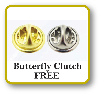 Your custom pin design is etched (die-struck) into the metal. The design is then filled with soft enamel colors (from PMS color chart) with the outlines of the design being raised metal. You can feel the texture (i.e. grooves) of the pins. The surfaces of the pins are then polished and shined. Epoxy coating can be added for a smooth protective finish. Or without epoxy, you can enjoy the texture of the pins.